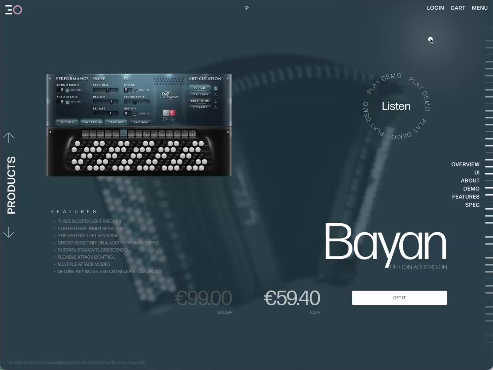 Virtual Instrument Product Page from Efimov Audio