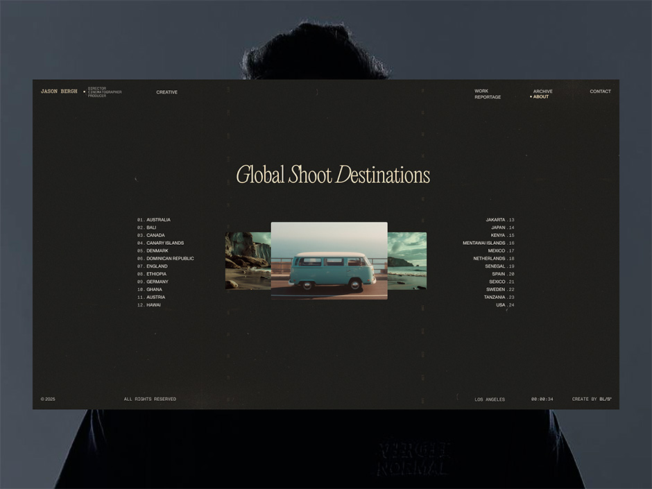 Jason Bergh doesn’t think in pages, menus, or structured user flows. His work lives in scenes, in rhythm, in tension and release. So from the very beginning, the idea of creating a conventional portfolio felt slightly misplaced — like trying to frame something cinematic inside a static grid.