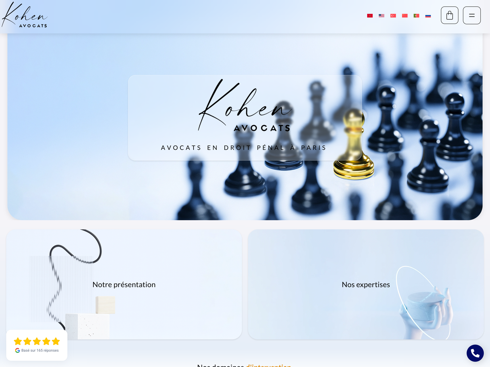 Kohen Avocats: criminal defense law firm in Paris. A modern design, connected to official legal databases, featuring AI-commented content and free legal templates.