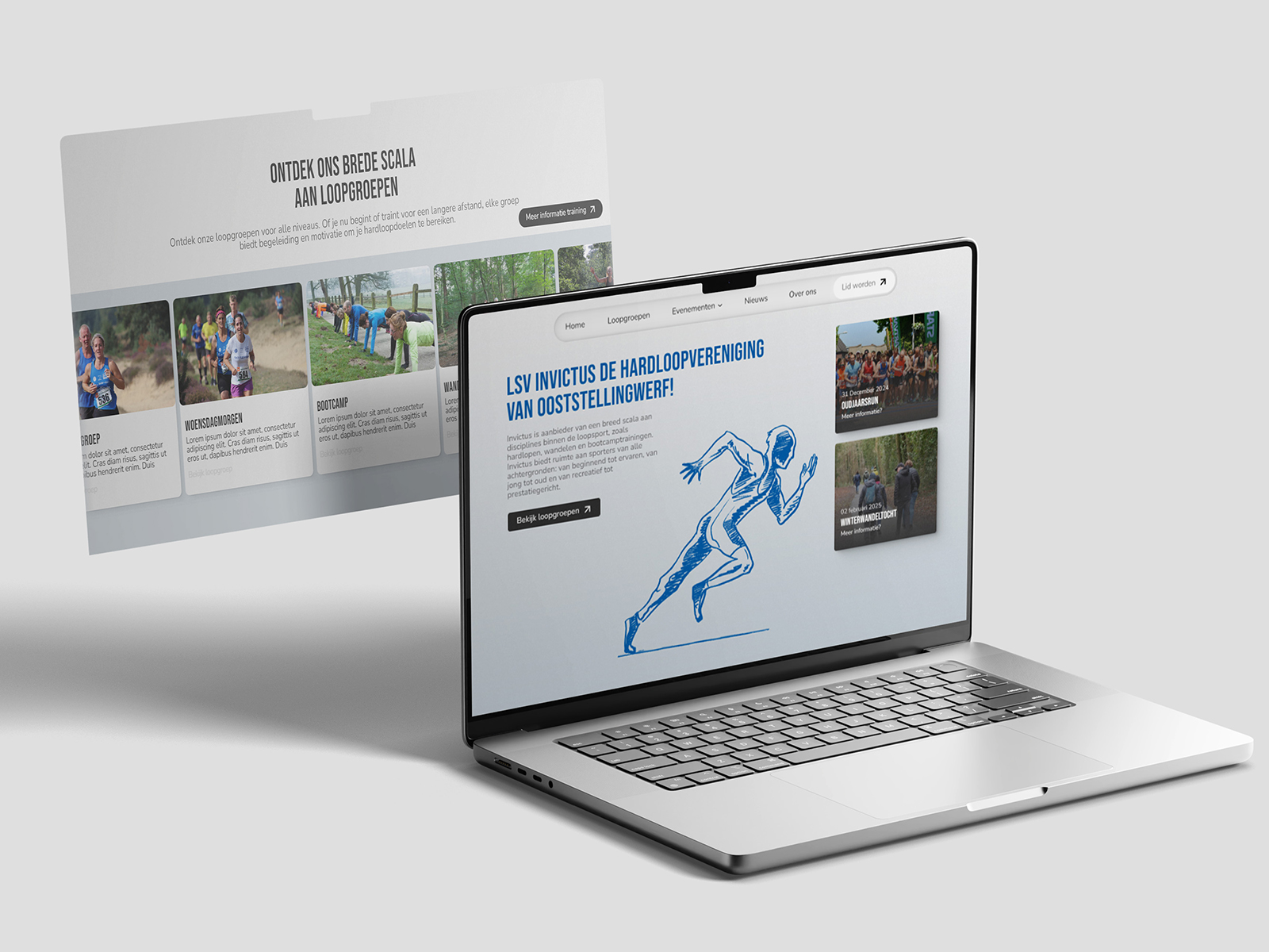 A website for LSV Invictus, a Dutch running club focused on sport and community, providing clear access to training groups and events.