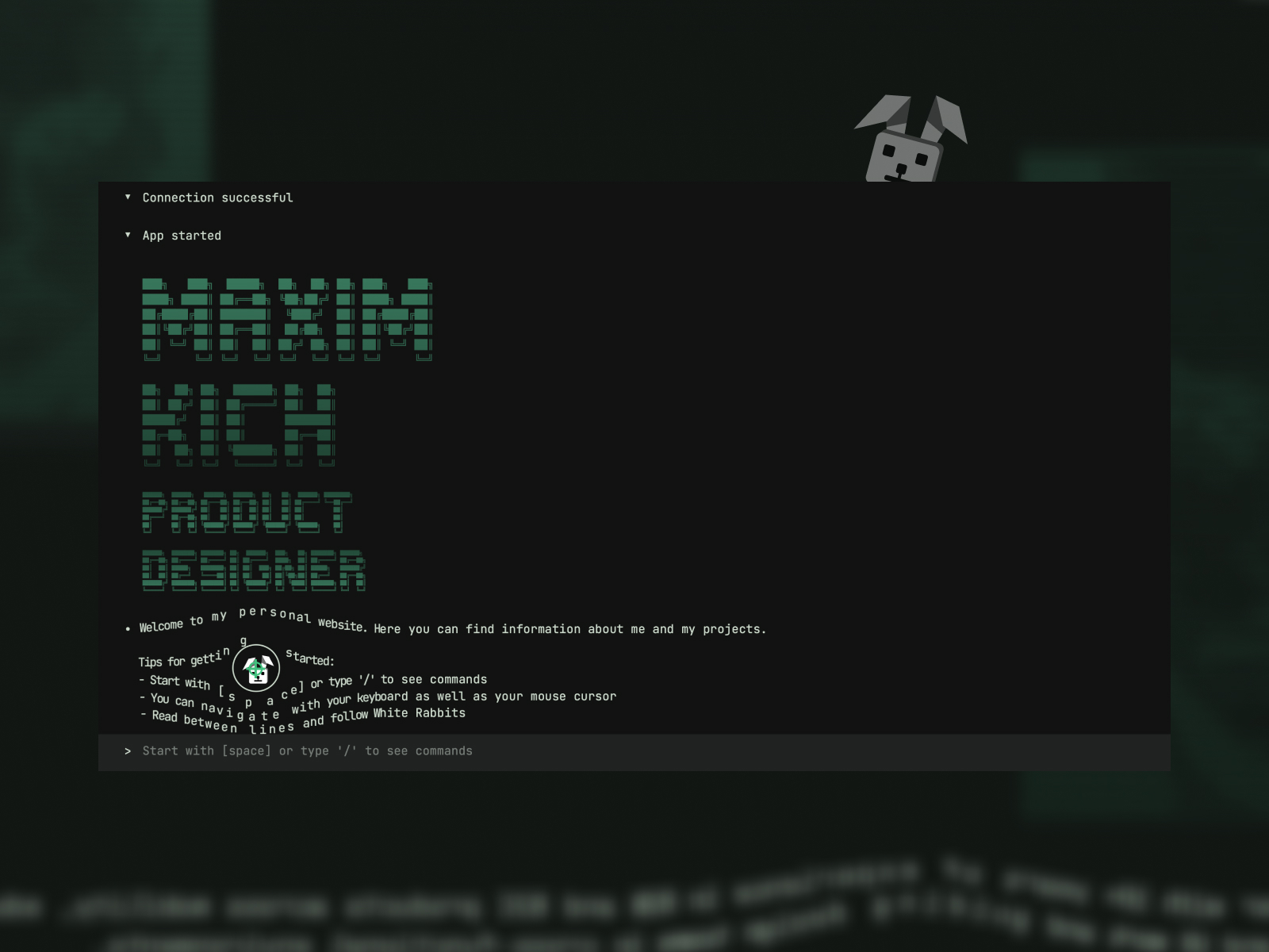 An experimental, CLI-inspired website built as an interactive playground, blending micro-games, hidden mechanics, and narrative UX to challenge how the web is explored.