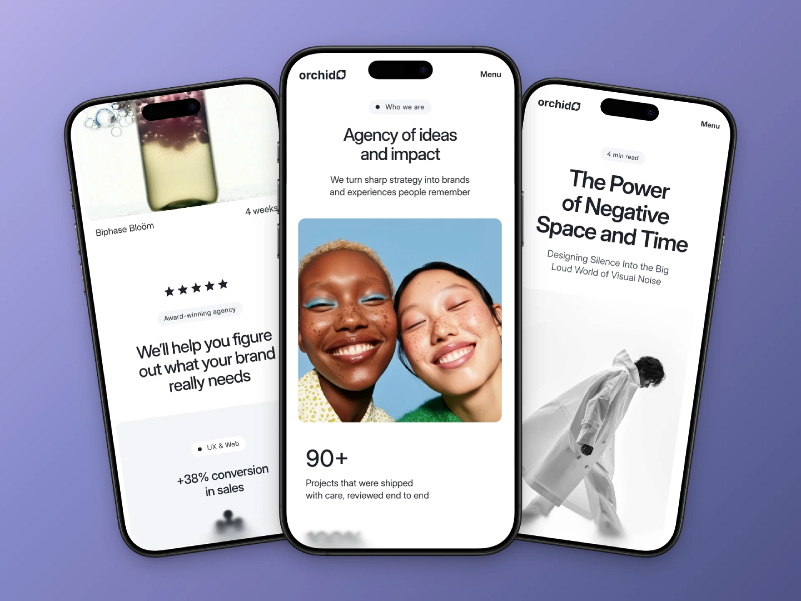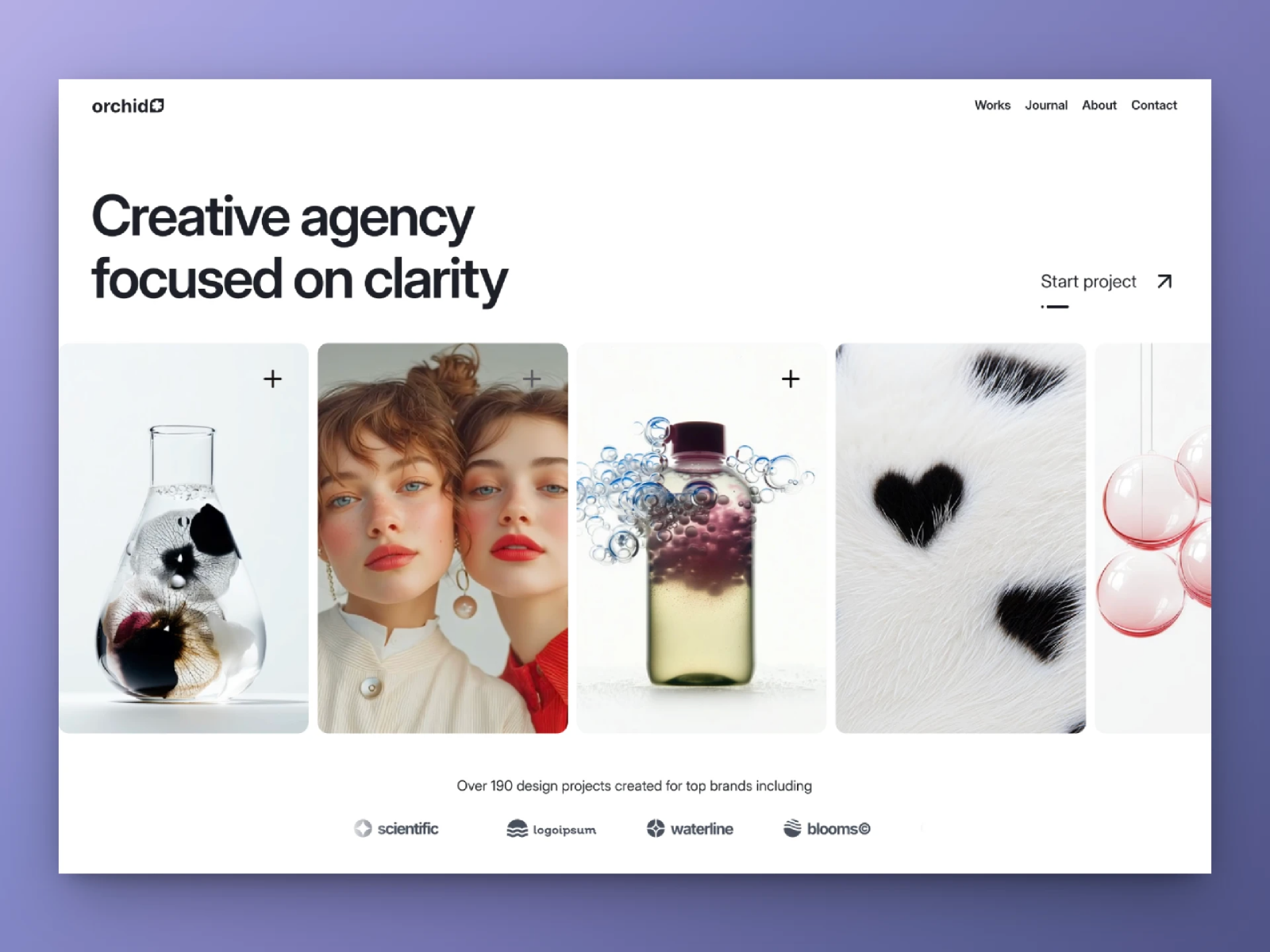 Orchid is a Framer template for creative studios. Multi-page, editorial layout with case studies, journal, pricing, and smooth motion interactions.