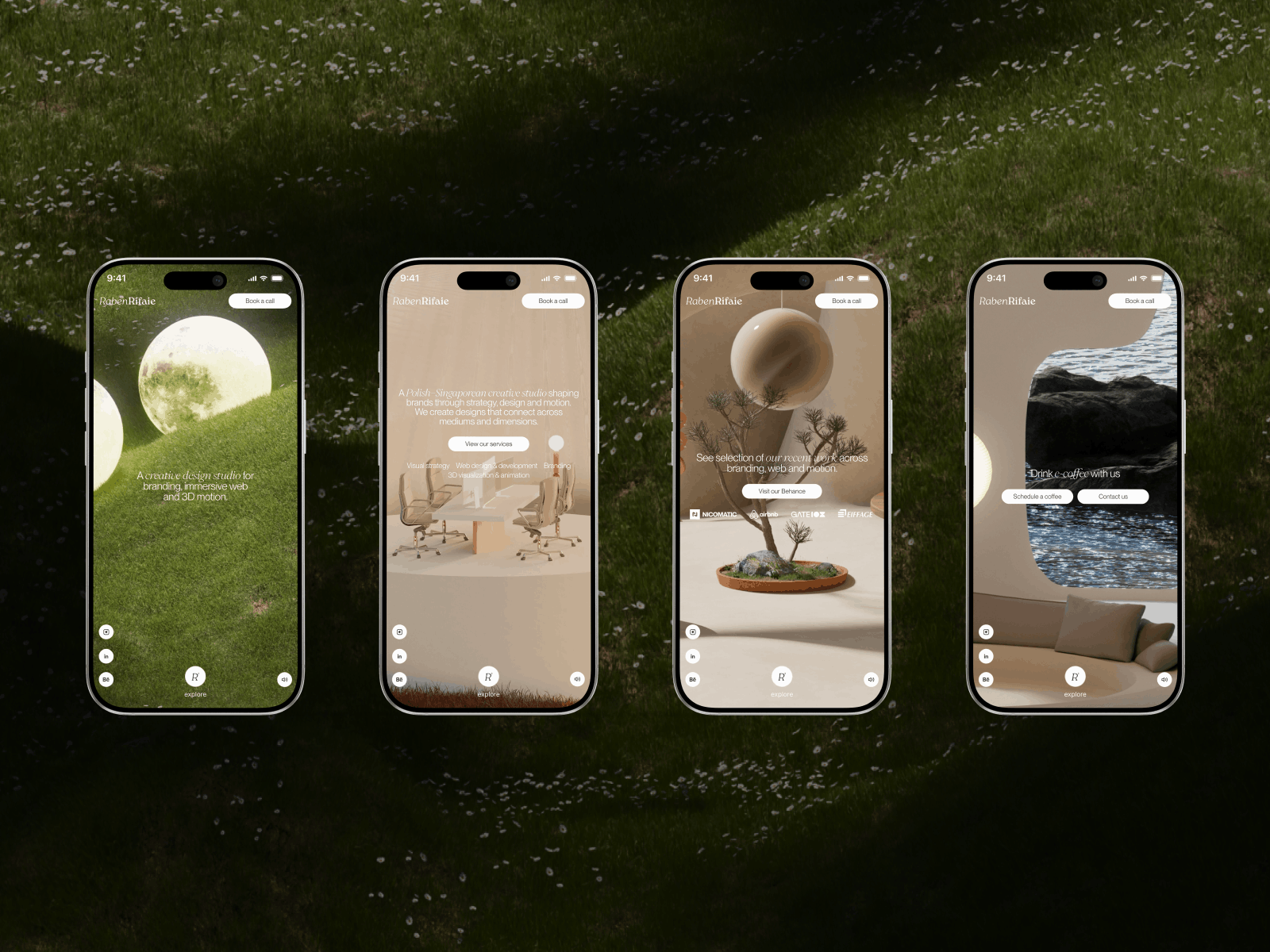 RabenRifaie website redesign. An immersive portfolio built in Framer, featuring high-quality 3D animations, tactile textures, and a seamless responsive layout for every device.